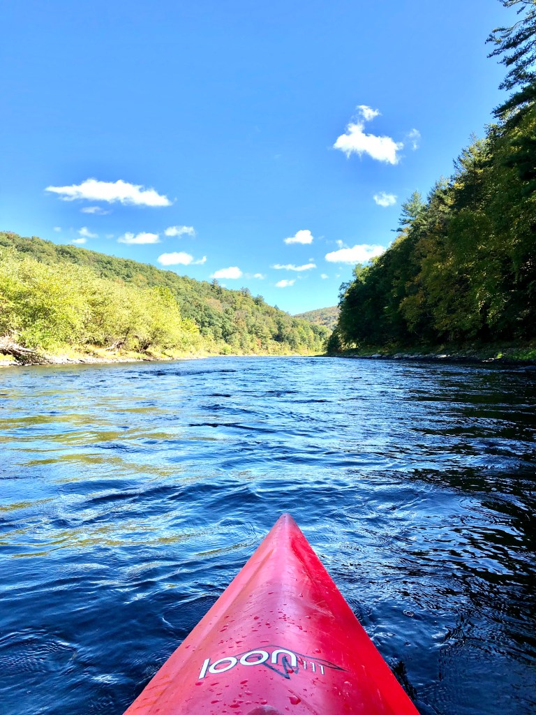 The Upper Delaware by boat is stunningly beautiful, “Deliverance” without the danger. I passed through a cloud forest on the drive over then popped out into a whole new world. The rivers, streams, mountains, valleys and thermals of the Pocanos and Catskills offer endless adventure. The land knows not what state it is: New York, New Jersey, Pennsylvania. It’s all part of the Appalachian Mountain Chain from above. It’s so easy to get to and so close to Rye that there’s no excuse not to treat yourself. Just take a left (287 West), a right (684 North), a left (84 West) and a right exit to the river town of your choice. I’ve paddled it solo and with a group of teenaged boys, staying overnight in a cabin. I’ve done the Gap several times too, most notably when my young son got knocked off our packed raft and went floating downriver with a group of women in their summer burqas. Most city dwellers and tourists go to this section to raft and tube, and it’s just too packed for my taste.